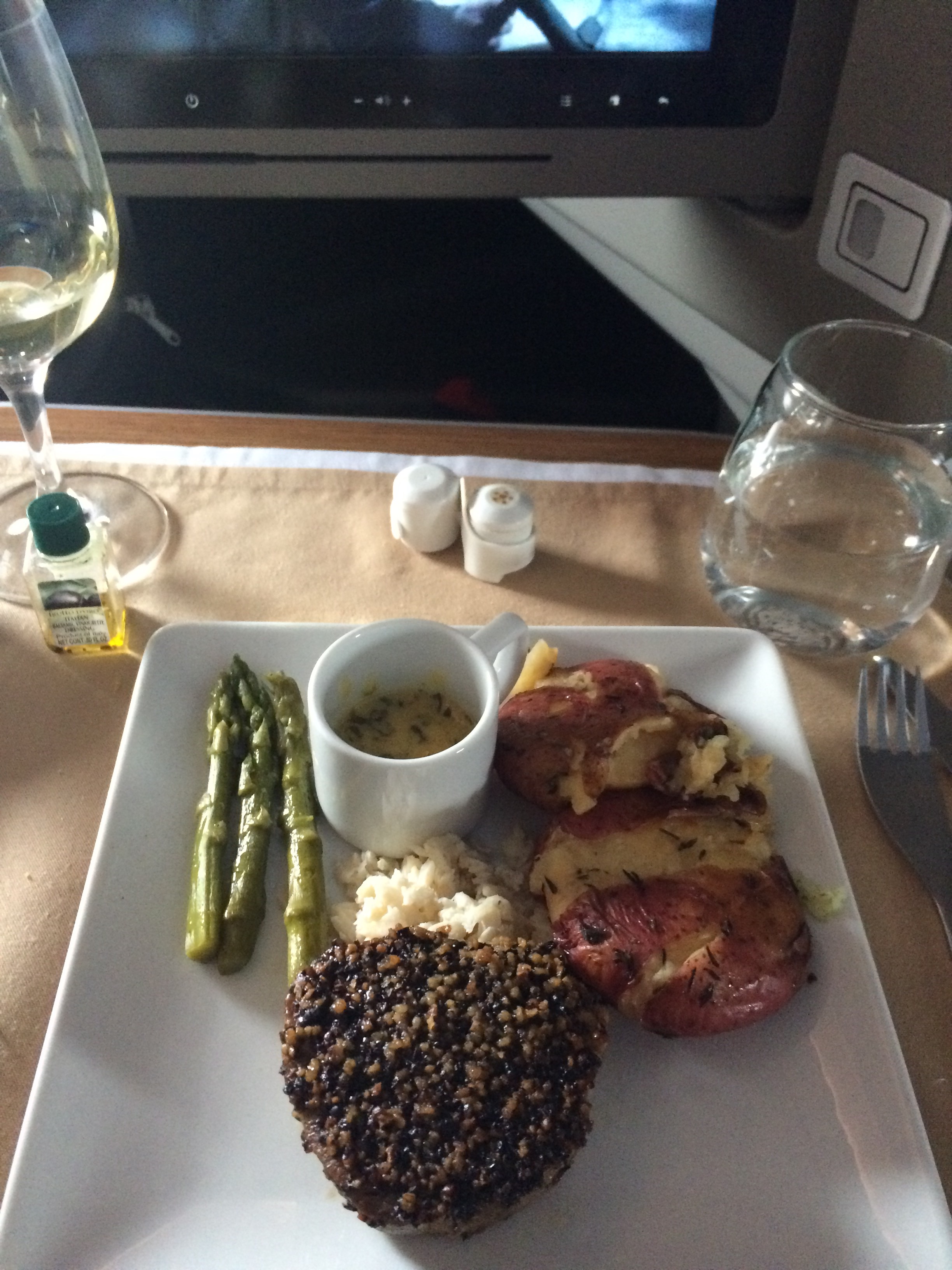 The cabin crew offered pre-departure drinks but these are served in a plastic cup and not the glass champagne flutes one receives on British Airways. The menu for the flight was very interesting and contained a range of options. Before take-off our orders for drinks were taken. I settled for a Mimosa, telling myself that the vitamin C would be good for me!