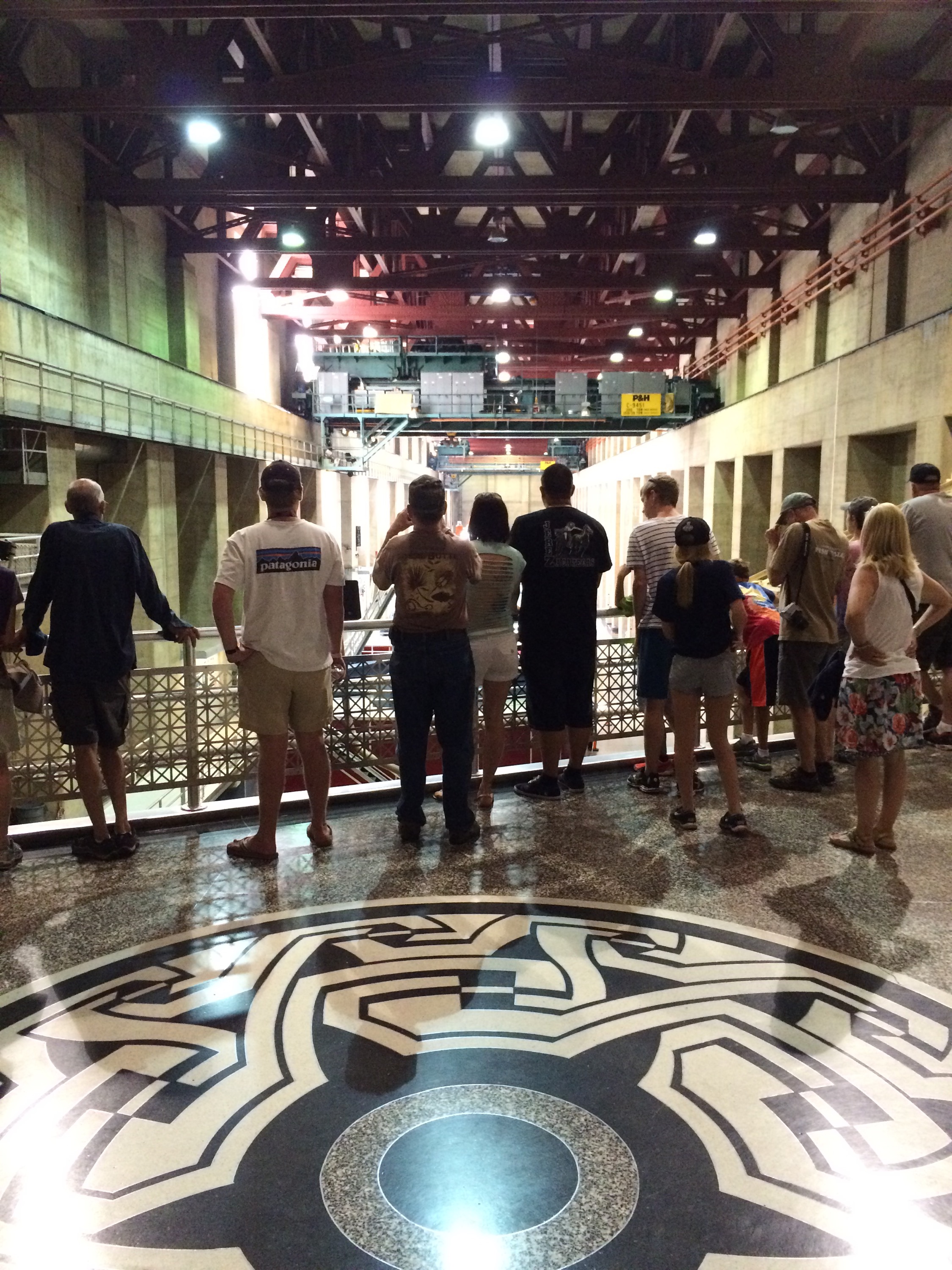 The first stop was at a new bridge overlooking the dam which was finished within the last decade and alleviated traffic issues at the dam. It is a magnificent structure – one of / if not the largest concrete span arch bridges in the USA, designed to be a copy of a small bridge which is part of the dam itself. We continued onto the dam itself and, after driving across it, we parked up and went in to join the tour.