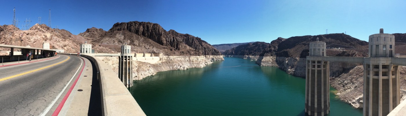 The guide, Randy, a big, bearded all-American hero, arrived at the hotel at about 0720 in an H2, bedecked in an American flag. He was sparky and chatty and full of information. We drove down to the Mandalay Bay hotel to pick up a Canadian family of three before we set off. He talked about the Hoover Dam, giving a brief and informative history of the project as we drove. We passed through Boulder City, the first American city without segregation which was founded to house the thousands of workers and their families during the construction.