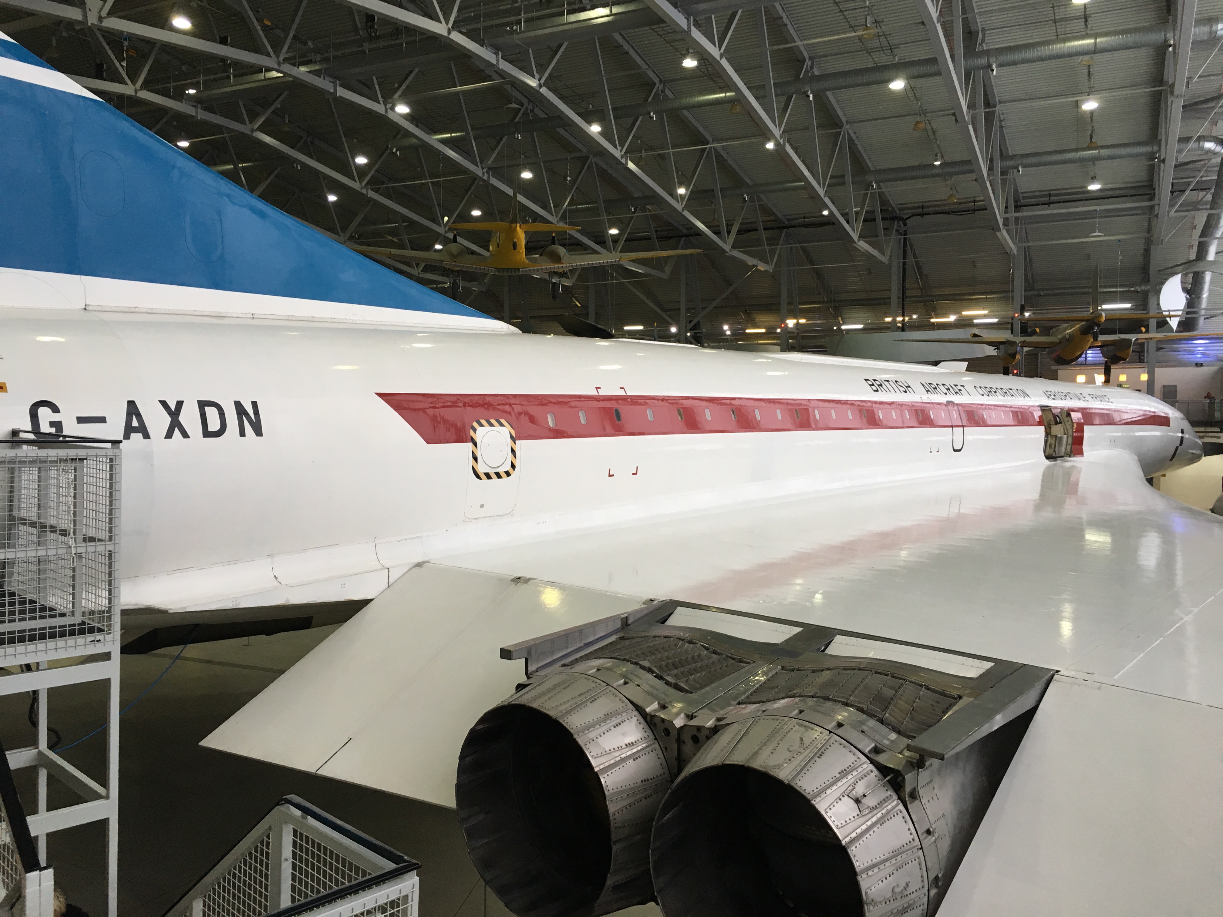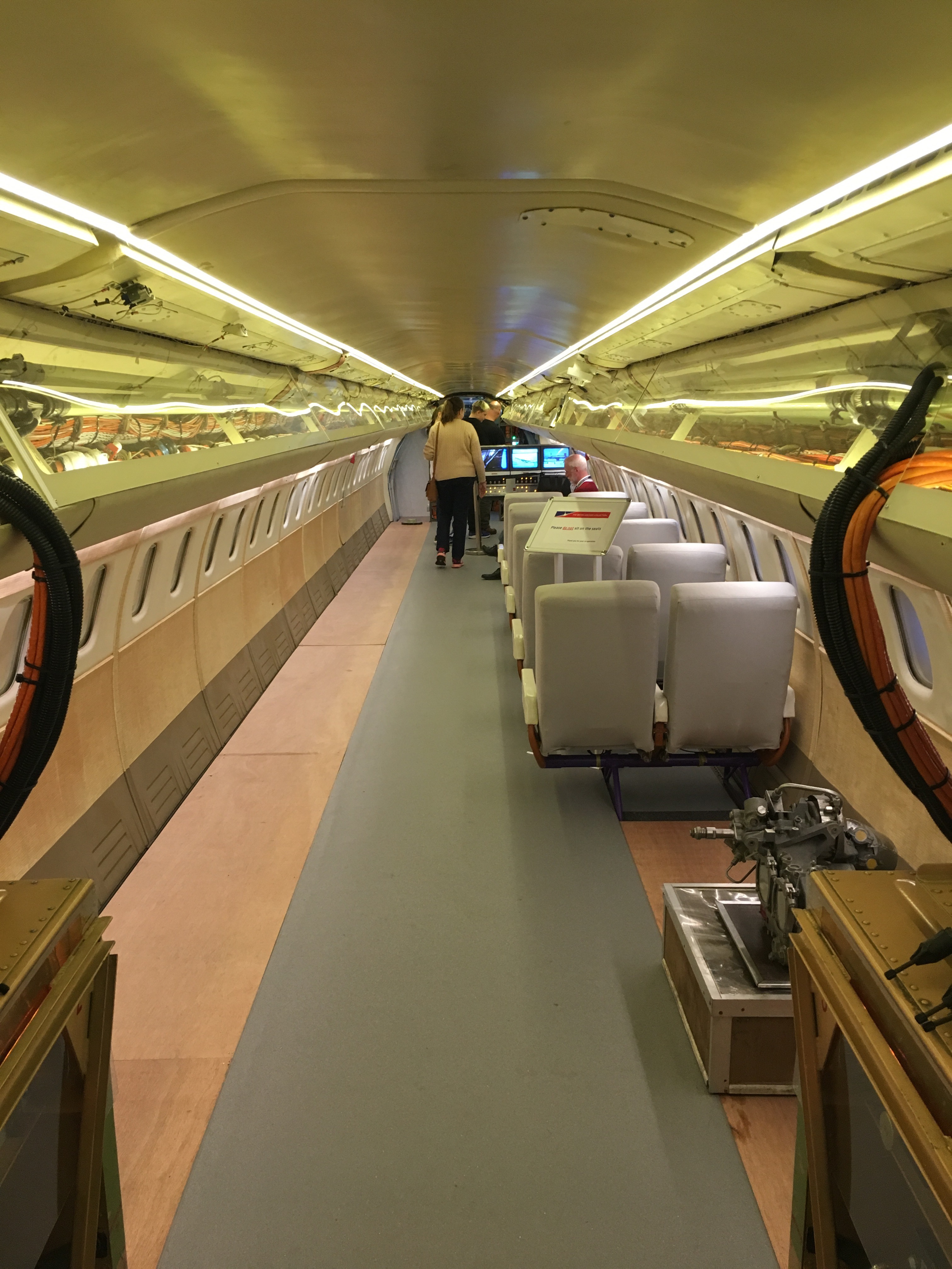This particular Concorde was one of the test aircraft used before it went into commercial production. I have walked around the Concorde that is in New York, and have been able to visit and climb aboard the aircraft in East Fortune and in Manchester. I have also seen the Concorde that is located at the end of the runway at Heathrow. This, then, is the fifth of the aircraft type that I have seen. Inside it is configured as the test plan was, without any seats. However you still get the feeling of how small it was, and the cockpit is the same. This shows just how basic the technology was compare to what we have nowadays.