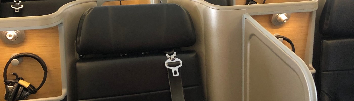 The cabin was very clean and beautifully designed. It was off-set so whilst each seat had the same floor area, some were closer to the aisle or window than others. There was plenty of storage space, power sockets and a large video screen. One thing that really irked me what that on all the aircraft save BA, I had to use the supplied headphones with the three prongs as my single 3.5mm jack wouldn’t work. I have a really comfortable pair of Beats noise cancelling headphones and I hate lugging them around with me and not being able to use them!