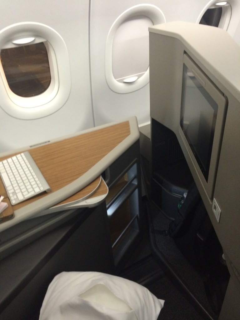 I boarded first and was into my seat straight away. Being in 1A, I had the other hundred passengers walk past me as they boarded. There are not many aircraft of the single-aisle variety where you board to be greeted with a 1-1 configuration. I have now flown on this aircraft three times, always in first class, so I have not been able to check out the business class seat, which is 2-2; OK if you are travelling with someone you know, but maybe a bit close if you don’t!