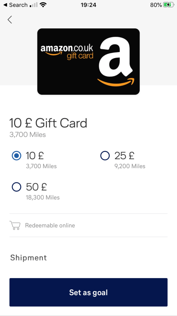 Just log into your Miles and More app, click on ‘Awards’ at the bottom then ‘Gift Cards’ at the top and Amazon shows as 3rd option on the left hand side. Remember I’m U.K. based, so if you are not then it might vary.