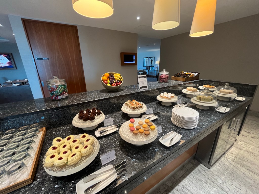 Now, for whatever reason, on the day I was there, there was a very nice red wine open which I had a little taste of. I can’t remember what it was, but it was lovely. I noticed in the fridge a white Rioja – one of my favourite wines – but it was off, presumably as it had sat open in the fridge for too long. I spoke with Dinesh, the excellent Lounge host, and he said he would look to see if he had any more. A couple of minutes later he came back with a Coteaux du Layon 1er cru Chaume, a 2018 Garzon Albarino, and a 2015 Chateau du Hureau Saumur-Champigny Tuffe. These are probably £20 bottles of wine which are not remarkable per se, but they were far superior and much more interesting than anything I have seen in a hotel lounge before.