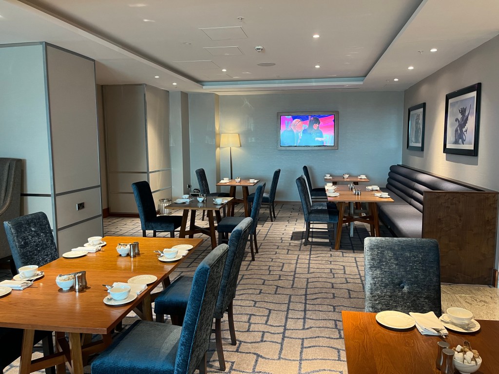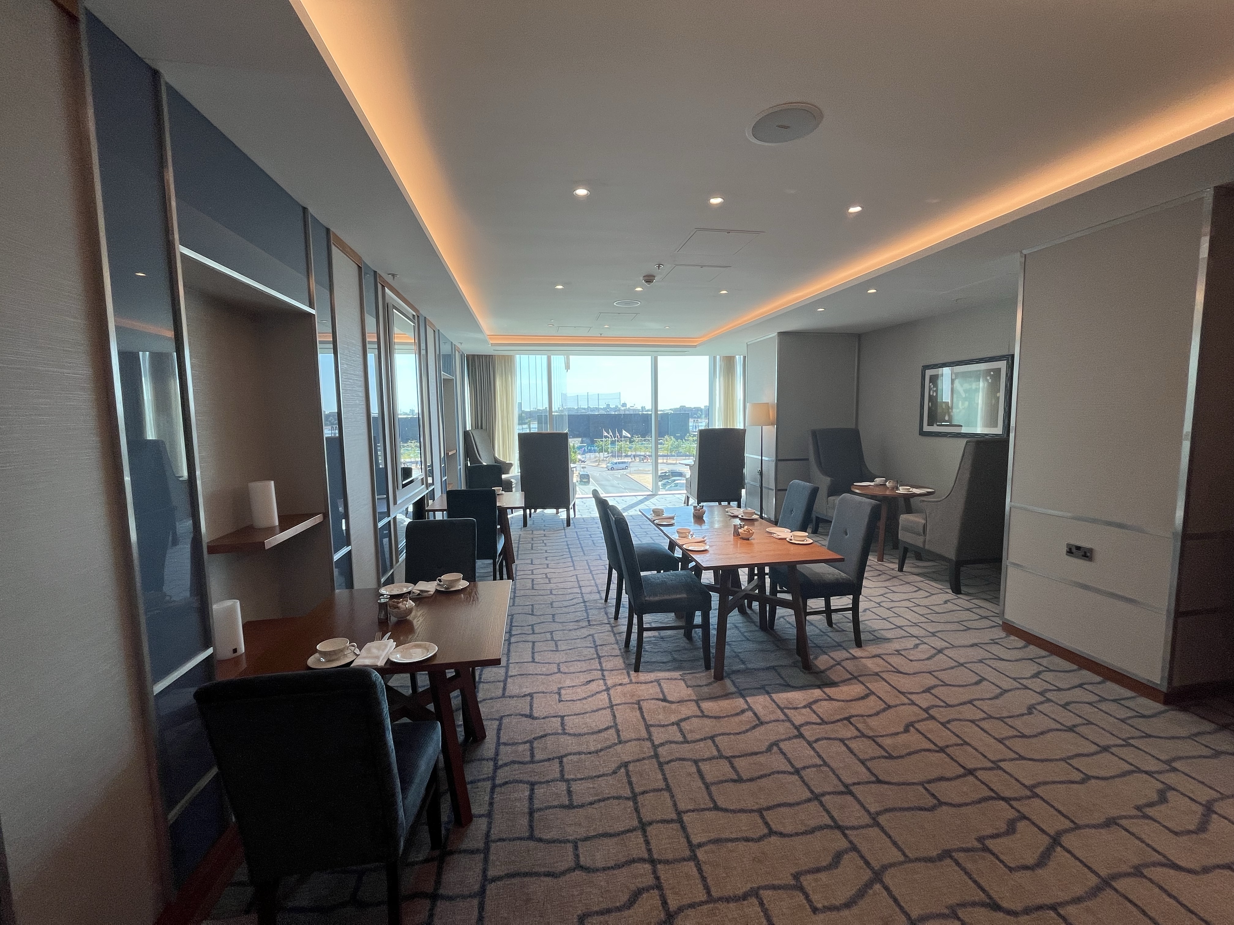 We popped into the Club Lounge for Afternoon Tea when we got back. The place was empty, and the staff were keen to interact and show us around. There was a good selection of cake and hot drinks and beautiful views through the floor-to-ceiling windows at the end.